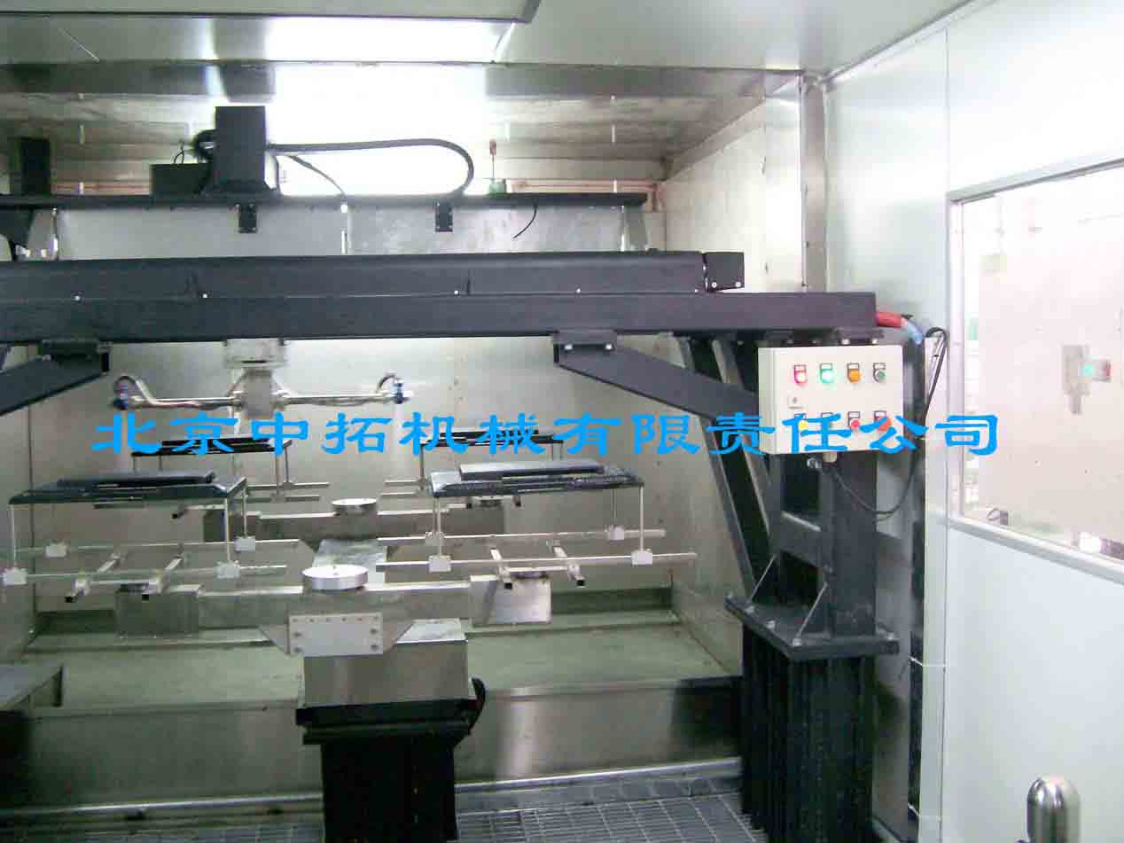 一側(cè)噴涂,一側(cè)取換工件。